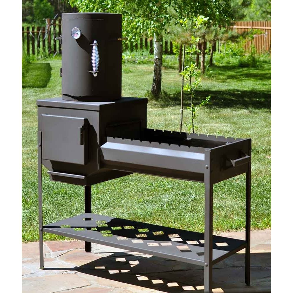 Мангал с коптильней PALITRA TECHNOLOGY Профи 50433-2-ST3 включает в себя: мангал, коптильню, печь для казана и гриль. Используется для приготовления абсолютных блюд. Коптильня имеет встроенный термометр, 3 уровня приготовления. В комплекте 3 решетки из нержавеющей стали. Жаровня мангала: ДхШхВ 700х400х180мм Коптильная камера: 500х350 мм Внимание! Казан в комплект не входит!