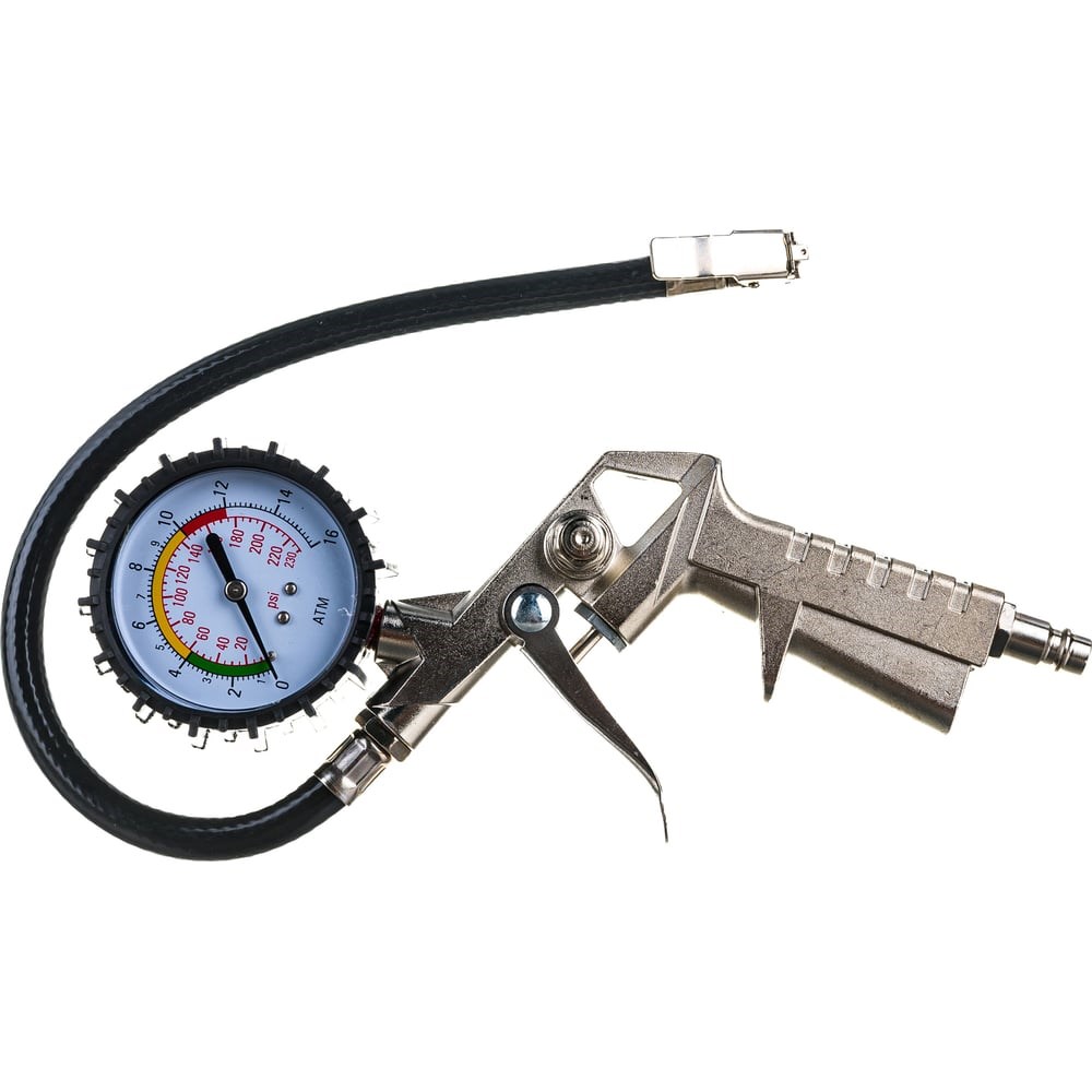 Манометр с пистолетом и шлангом ДАЛИ-авто DA-01223 гарантирует удобство при накачивании шин. Оснащается прочным шлангом. Предусматривается крючок для подвешивания, что обеспечивает удобное хранение устройства. Рассчитан на максимальное давление 16 атм. Диаметр шланга составляет 10 мм.