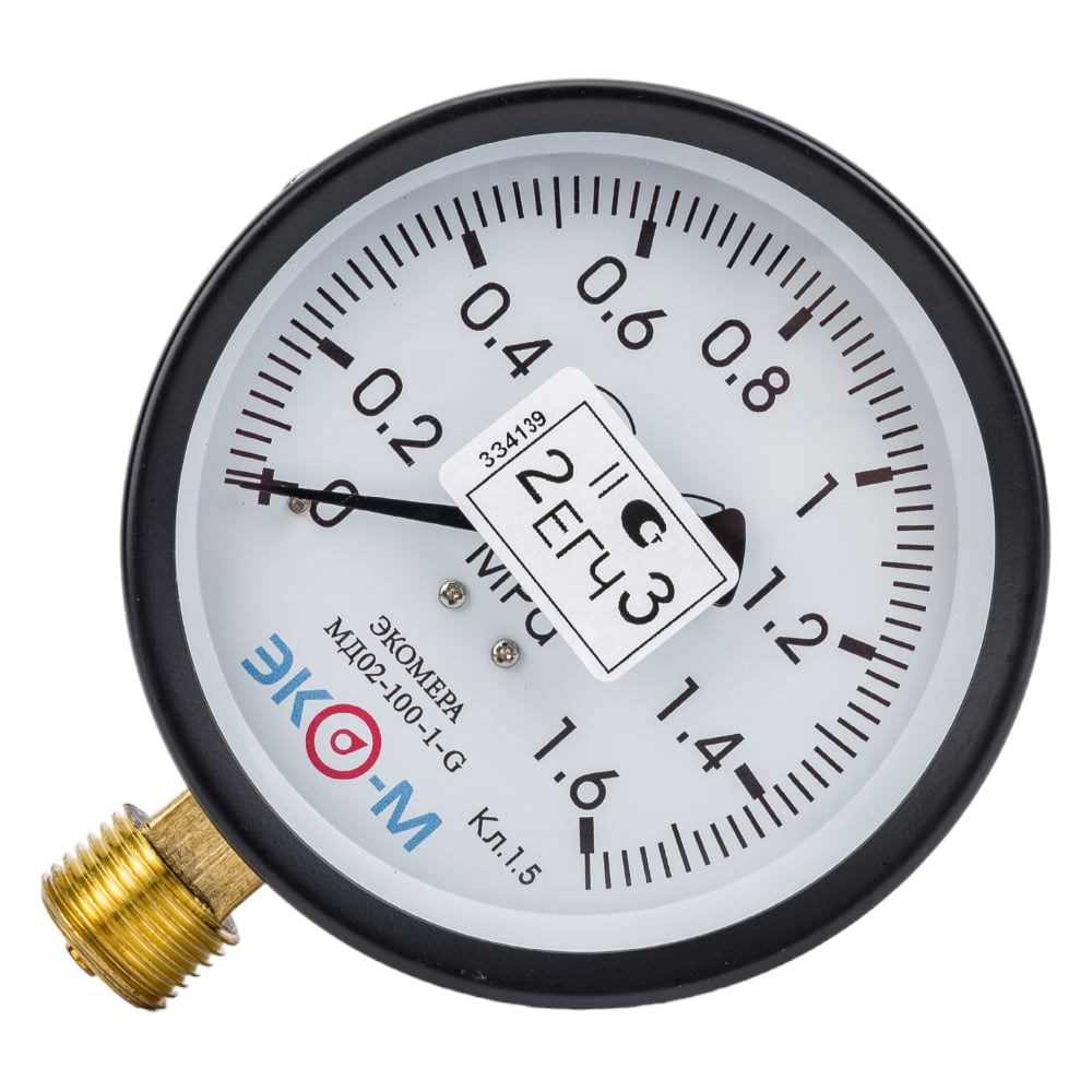 Манометр ЭКО-М Экомера МД02-100мм 0..1,6 МПа G1\2 (Эконом) МД02-100-G-1,6МПа-ЭИ предназначен для измерения давления газообразных и жидких, не сильновязких и кристаллизующихся сред, не агрессивных по отношению к медным сплавам (вода, пар, газ) или вакуума.Межповерочный интервал 2 года.Все приборы поверены и внесены в АРШИН.