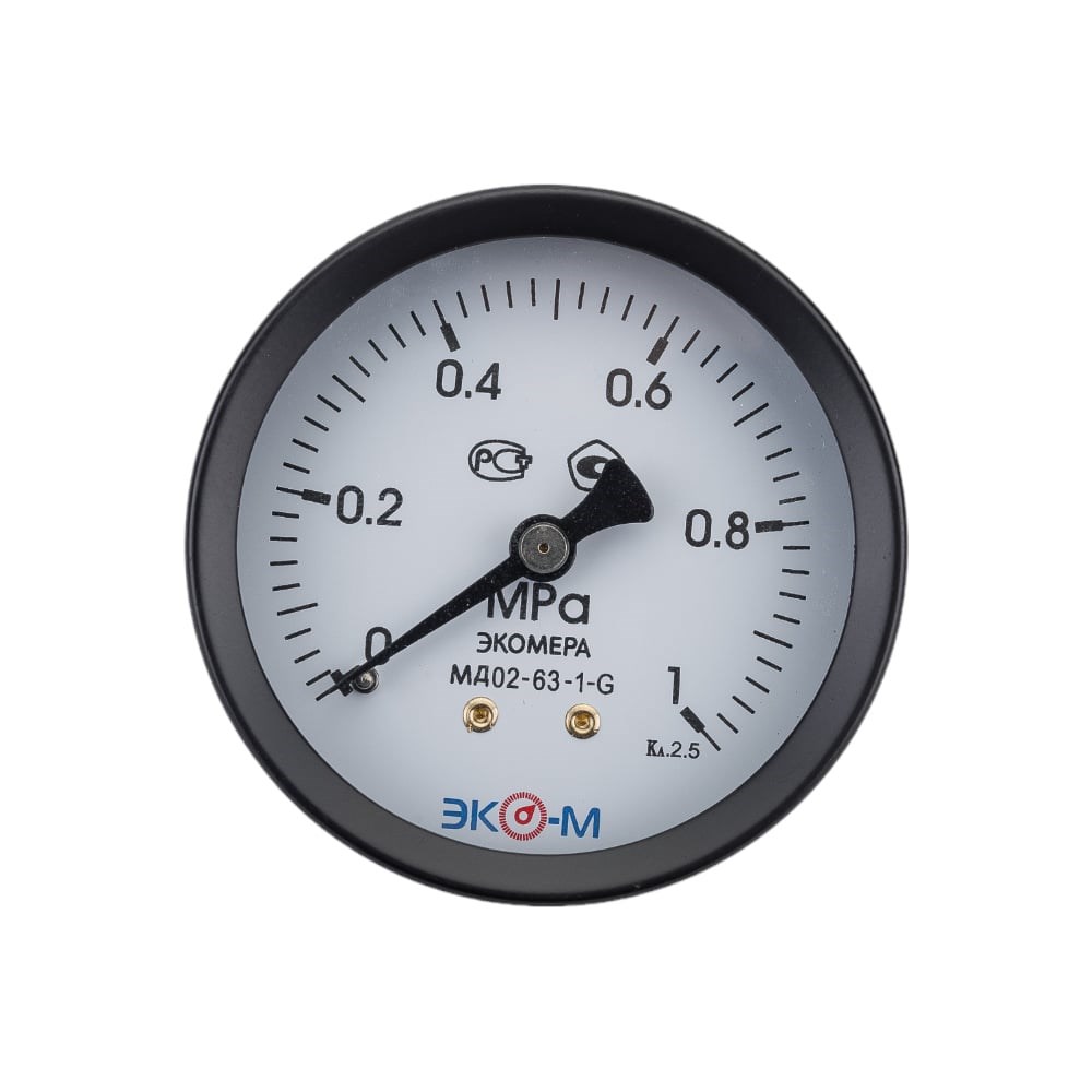 Манометр ЭКО-М Экомера МД02-63мм 0..1,0МПа G1\4 Осевой МД02-63-G-1МПа-ОИ предназначен для измерения давления газообразных и жидких, не сильновязких и кристаллизующихся сред, не агрессивных по отношению к медным сплавам (вода, пар, газ) или вакуума. Межповерочный интервал 2 года.