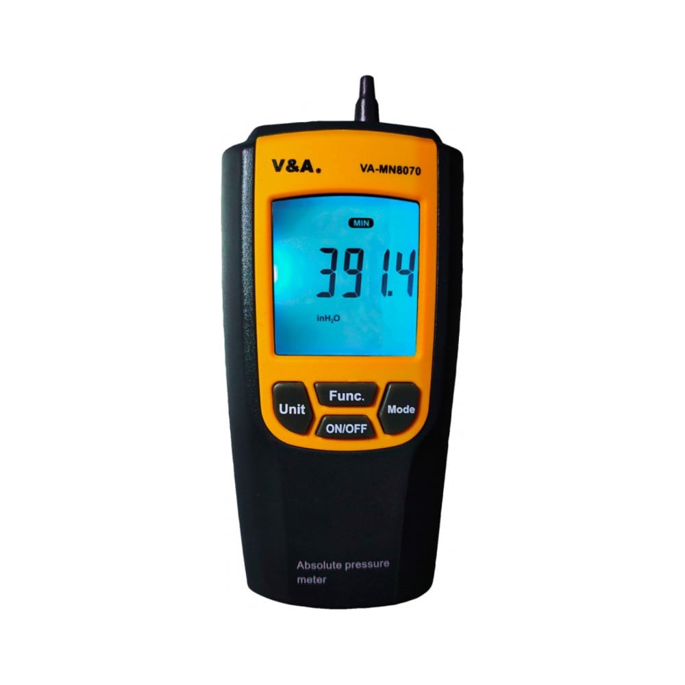 Функции прибора: Фиксация текущего, максимального и минимального значений; Автоматический диапазон измерений; Индикация выхода за пределы диапазона измерения; Восемь единиц измерения давления; Автоотключение / непрерывный режим работы; Подсветка дисплея; Индикатор низкого заряда батарей.