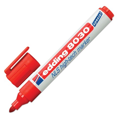 Корпус маркера изготовлен из ударопрочного пластика. Маркер EDDING оснащен мягким пулевидным наконечником. Пишущий узел маркера EDDING-8030 изготовлен так, что при маркировке не требуется нажатия на маркер.