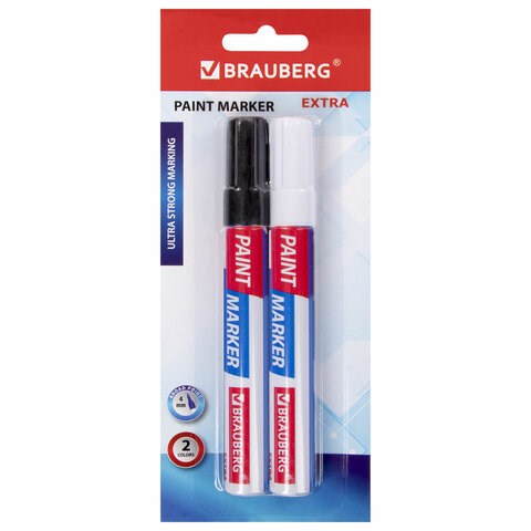 Маркер-краска лаковый EXTRA (paint marker) 4 мм, НАБОР 2 цвета, БЕЛЫЙ/ЧЕРНЫЙ, УСИЛЕННАЯ НИТРО-ОСНОВА, BRAUBERG, 151998