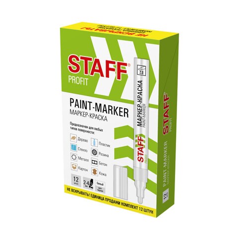 Маркер-краска лаковый (paint marker) 2-4 мм, БЕЛЫЙ, КОМПЛЕКТ 12 ШТУК, НИТРО-ОСНОВА, STAFF PROFIT, для любых поверхностей, 152584
