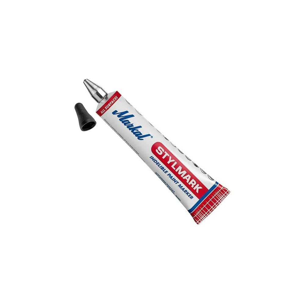 Маркер-краска в металлической тубе Markal Stylmark, 3,0 мм, чёрный 96655 оснащен специальным стальным шариком для равномерного распределения краски.  Удобная форма тюбика позволяет удерживать инструмент в руках.
