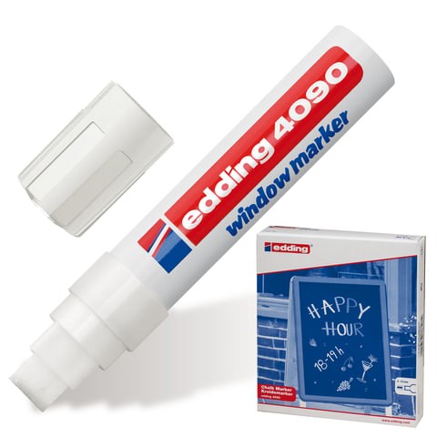 Маркер меловой EDDING "4090", 4-15 мм, БЕЛЫЙ, влагостираемый, для гладких поверхностей, E-4090/49