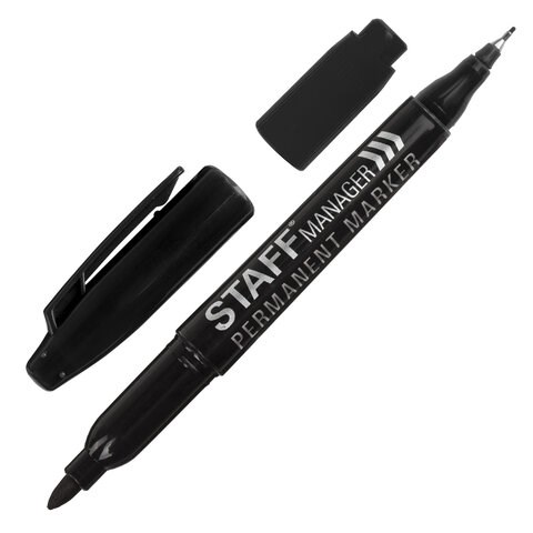 Маркер перманентный двусторонний STAFF "Manager" PM-625, ЧЕРНЫЙ, наконечники 0,8 мм / 2,2 мм, 151625