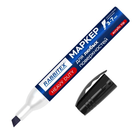 Маркер перманентный строительный для ЛЮБЫХ поверхностей металл, дерево, стекло, пластик, бетон HEAVY DUTY, ЧЕРНЫЙ 3-7 мм, RABBITEX, 152659