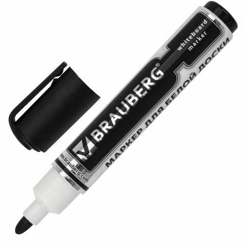 Маркер для доски черного цвета обладает круглым пластиковым корпусом диаметром 19 мм. Наконечник круглой формы обеспечивает толщину линии письма 5 мм, что позволяет писать крупным шрифтом, который будет хорошо виден. Благодаря спиртовой основе, чернила быстро высыхают и не оставляют разводов, легко стираются сухой губкой. Изделие не перезаправляется. Цвет колпачка соответствует цвету чернил.