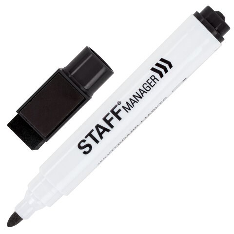 Маркер стираемый для белой доски на магните со стирателем, ЧЕРНЫЙ, STAFF "Manager" WBM-002, 3 мм, 152002