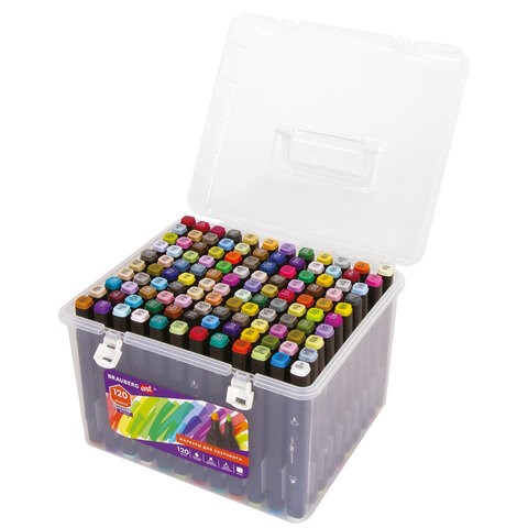Маркеры для скетчинга двусторонние BRAUBERG ART DEBUT "BLACK", НАБОР 120 шт., пластиковый кейс, 152134