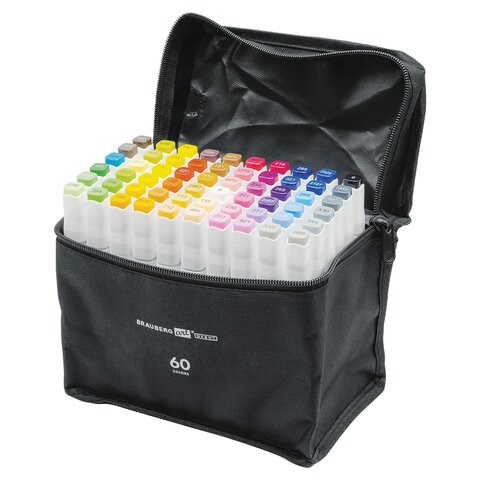 Маркеры для скетчинга двусторонние BRAUBERG ART DEBUT "WHITE", НАБОР 60 шт., чехол, 152143