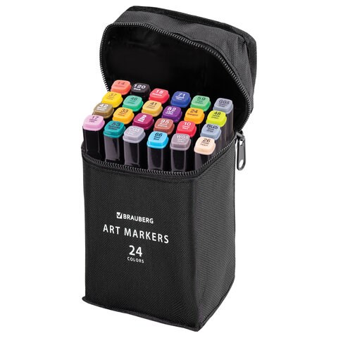 Маркеры для скетчинга двусторонние, НАБОР 24 шт., базовые цвета, в чехле, BRAUBERG, 152295