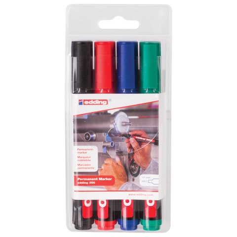 Маркеры перманентные EDDING 300 НАБОР 4 шт., АССОРТИ, круглый наконечник, 1,5-3 мм, E-300/4S