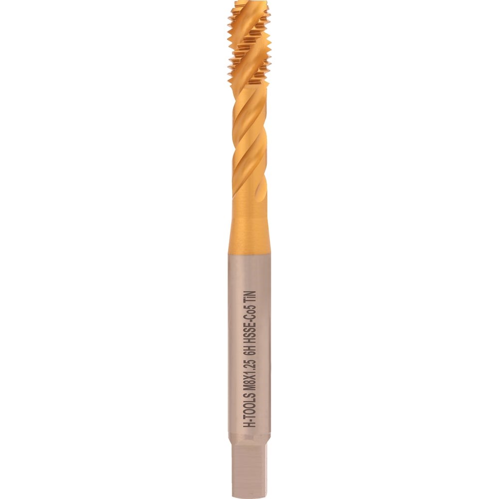 Метчик машинный H-Tools предназначен для создания внутренней резьбы на деталях и заготовках из различных материалов. Изготовлен из высококачественной быстрорежущей стали HSSE-Co5 легированной кобальтом 5%, которая гарантирует прочность и износостойкость. Метчик используется для создания метрической резьбы, с углом профиля 60 градусов.Покрытие TiN (нитрид титана) увеличивает термостойкость инструмента до 600°С и микротвердость до 20-25 ГПа. Низкий коэффициент трения 0,4 уменьшает возможность возникновения вибраций и холодных наплавов тем самым повышает надежность инструмента.Подходит для обработки заготовок, выполненных из легированной и нержавеющей стали, чугуна, алюминия, меди, бронзы, цинка, с пределом прочностью до 1000MPa. Резьба нарезается за один этап, машинным или ручным способом. Форма заборной части C (2-3 нитки) - для глухих отверстий. Винтовые канавки расположены под углом 45°, что обеспечивает оптимальное стружкоудаление в направлении хвостовика. Соответствует стандарту DIN371 - для машинных метчиков с усиленным хвостовиком.