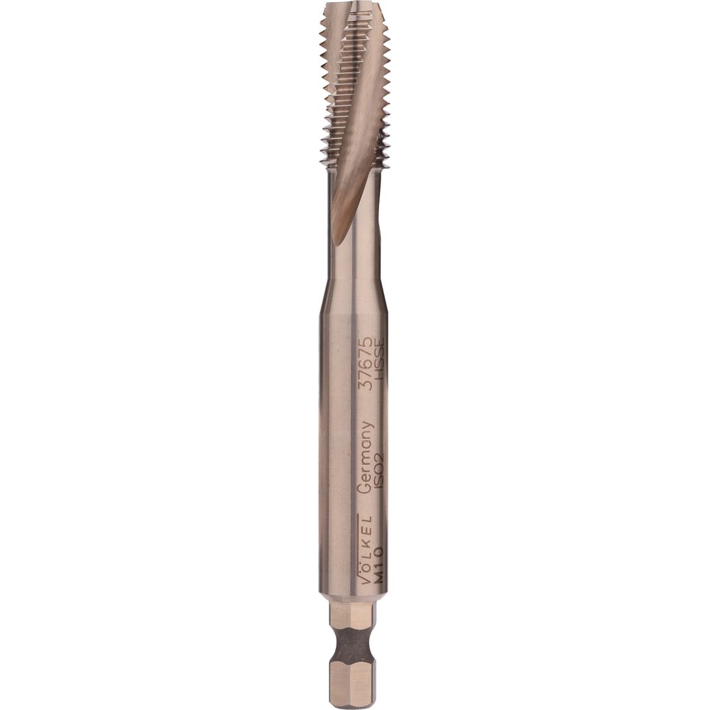Машинный метчик с винтовой канавкой предназначен для создания внутренней резьбы в различных материалах. Изготовлен из высококачественной быстрорежущей стали HSSE, которая гарантирует прочность и износостойкость. Метчик имеет 6-гранный хвостовик 1/4", что позволяет использовать в качестве держателя дрель-шуруповерт, а так же стандартные магнитные держатели для бит. Спиральная канавка с углом наклона 15° обеспечивает оптимальное стружкоудаление. Инструмент подходит для обработки заготовок, выполненных из легированной или нержавеющей стали, чугуна, алюминия, меди, бронзы, цинка, с пределом прочности до 900MPa.