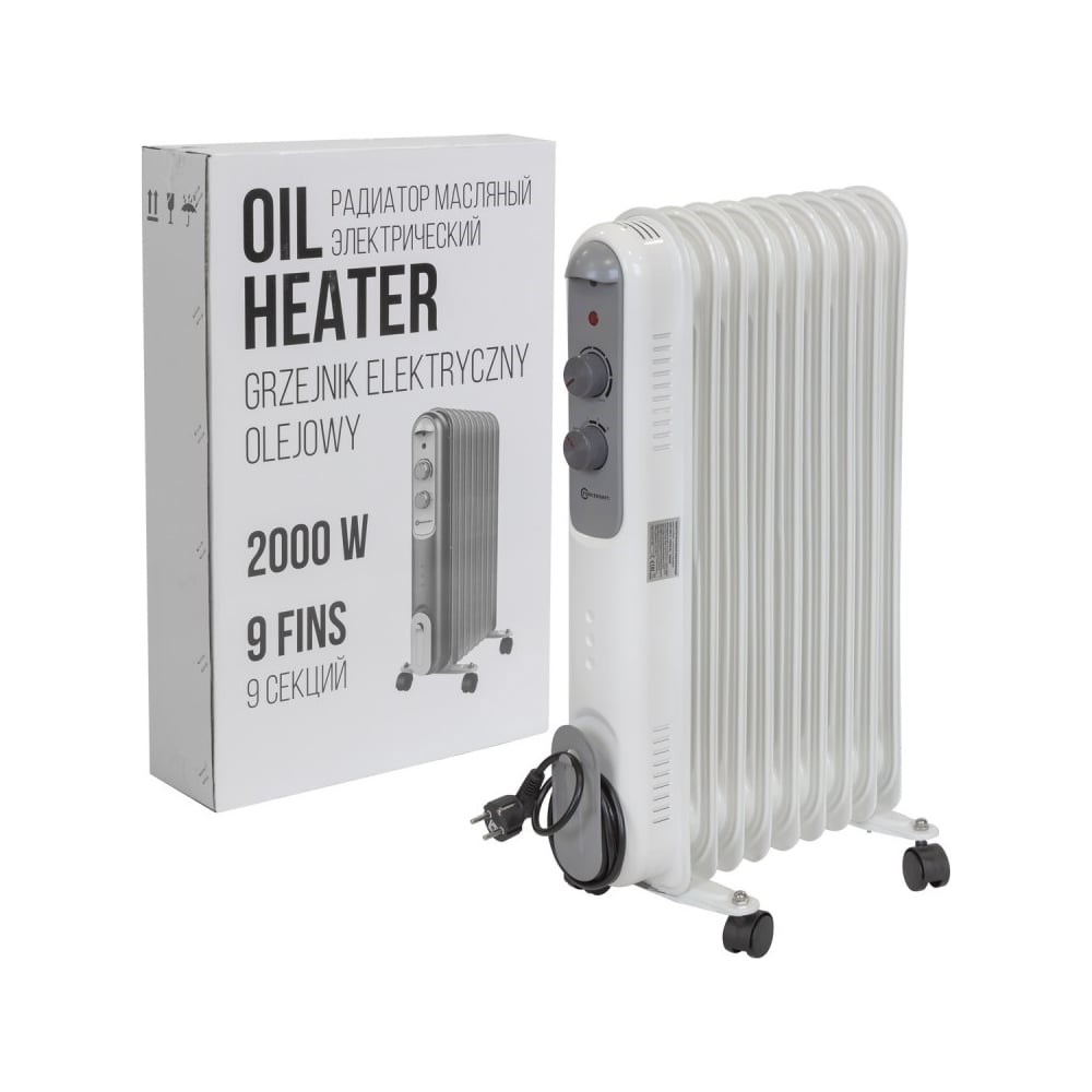 Масляный электрический радиатор от бренда Forcekraft - это отопительное устройство, которое использует масло для обогрева помещения. Эта технология обладает максимальной теплоотдачей и энергоэффективностью, не сушит воздух и не сжигает кислород, что особенно важно для небольших помещений. Радиатор состоит из 9 секций, каждая из которых имеет размер 110 х 580 мм. Максимальная мощность масляного обогревателя составляет 2000 Вт, что позволяет быстро и эффективно нагревать помещение. Радиатор работает при напряжении сети 220-240 В и частоте 50-60 Гц. Масляный обогреватель имеет 3 режима работы: 1. Для сохранения и поддержания тепла; 2. Для плавного нагрева и поддержания тепла; 3. Для быстрого нагрева холодного помещения. Регулируемый контроль термостата позволяет выбирать оптимальную температуру для помещения. Индикаторная лампочка загорается при нагревании и гаснет при достижении установленной температуры. Обогреватель оснащен двумя системами защиты от перегрева, что обеспечивает безопасность в использовании. Масляный обогреватель прост в обращении, не производит шума при работе и не занимает много места. Широкое основание шасси исключит опрокидывание, а специальная конструкция колесиков подарит удобство и маневренность при перемещении обогревателя . Также есть держатель для хранения сетевого шнура. Масляный обогреватель - это надежное и эффективное отопительное устройство, которое может использоваться как дома, так и в офисе или других помещениях.