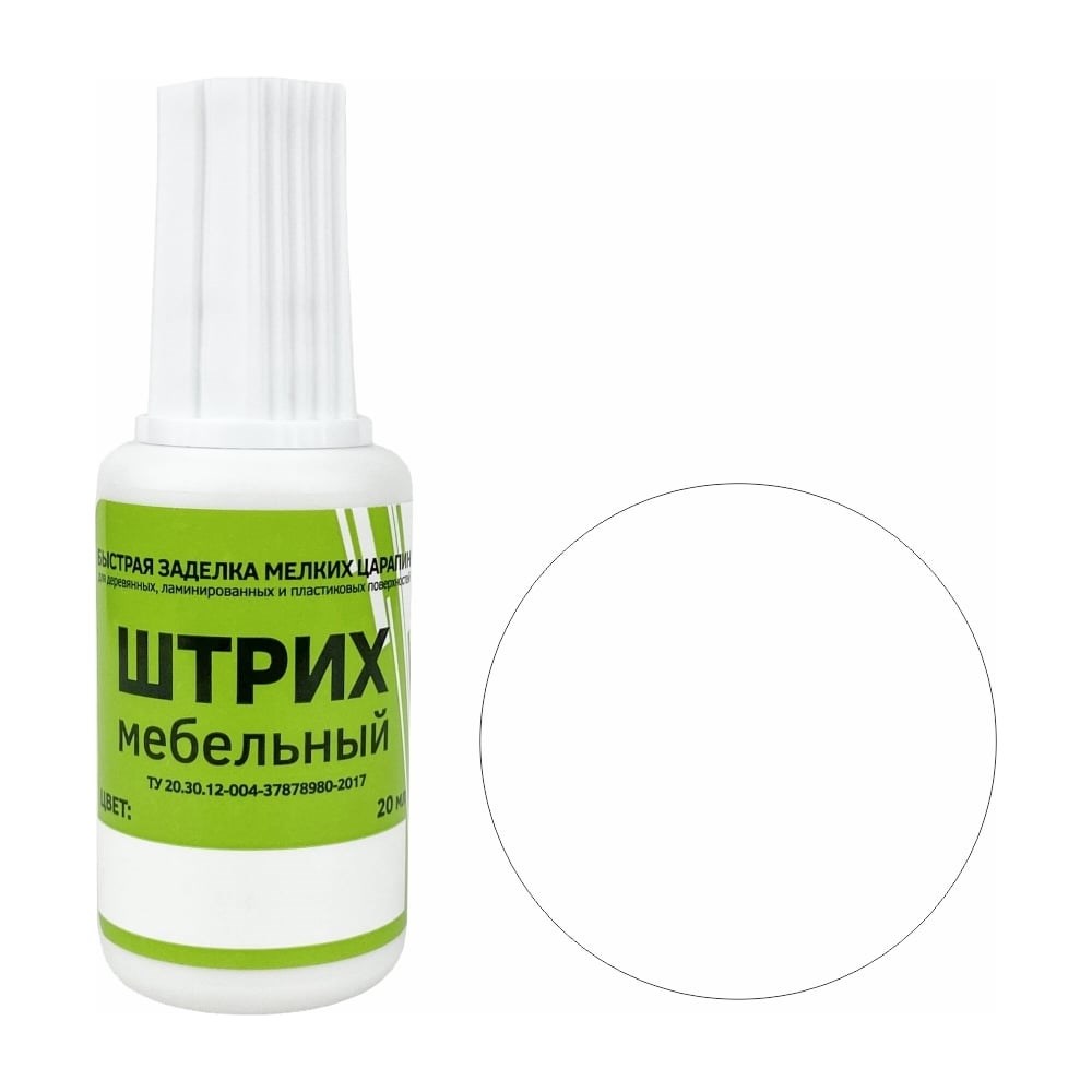 Мебельный штрих Resmat цвет белый, блистер арт. 2152 предназначен для быстрой заделки мелких повреждений на деревянных, ламинированных и пластиковых поверхностях, подверженных интенсивной эксплуатации. Для обеспечения влагостойкости и защиты поврежденного участка, рекомендуется поверх штриха нанести лак фиксирующий 3-5 слоев с переменной сушкой 5 минут. Виды поверхностей: ЛДСП, МДФ, ламинат, паркет, плинтуса, фанера, массив дерева, лестницы, пластик. Виды повреждений: сколы, царапины, трещины, стыки, швы. Условия хранения: от +5 до +30 градусов. Хранить флакон плотно закрытым, вдали от источников тепла. Свойства: Морозоустойчив. После размораживания, сохраняет первоначальные свойства. Внимание! При замерзании штриха перед использованием выдержать флакон при комнатной температуре не менее 2-х часов. Способ применения: Перед использованием флакон со штрихом тщательно взболтать Реставрируемую поверхность очистить от пыли и грязи Нанести штрих кисточкой тонким слоем на поврежденное место При необходимости нанести дополнительно 1-2 слоя с промежуточной сушкой 5 минут, максимальное количество слоев - 3 Излишки удалить влажной тканью, время полного высыхания 2 часа При загустении разбавить водой, но не более 10% от общей массы Применяется как внутри помещения, так и на открытом воздухе