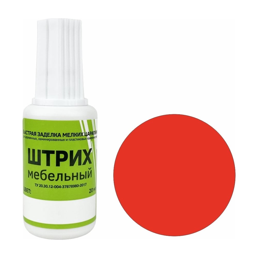 Мебельный штрих Resmat цвет красный, блистер арт. 2170 предназначен для быстрой заделки мелких повреждений на деревянных, ламинированных и пластиковых поверхностях, подверженных интенсивной эксплуатации. Для обеспечения влагостойкости и защиты поврежденного участка, рекомендуется поверх штриха нанести лак фиксирующий 3-5 слоев с переменной сушкой 5 минут. Виды поверхностей: ЛДСП, МДФ, ламинат, паркет, плинтуса, фанера, массив дерева, лестницы, пластик. Виды повреждений: сколы, царапины, трещины, стыки, швы. Условия хранения: от +5 до +30 градусов. Хранить флакон плотно закрытым, вдали от источников тепла. Свойства: Морозоустойчив. После размораживания, сохраняет первоначальные свойства. Внимание! При замерзании штриха перед использованием выдержать флакон при комнатной температуре не менее 2-х часов. Способ применения: Перед использованием флакон со штрихом тщательно взболтать Реставрируемую поверхность очистить от пыли и грязи Нанести штрих кисточкой тонким слоем на поврежденное место При необходимости нанести дополнительно 1-2 слоя с промежуточной сушкой 5 минут, максимальное количество слоев - 3 Излишки удалить влажной тканью, время полного высыхания 2 часа При загустении разбавить водой, но не более 10% от общей массы Применяется как внутри помещения, так и на открытом воздухе