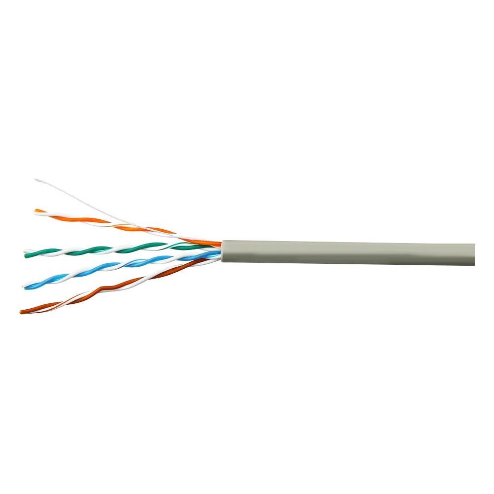 Кабель предназначен для внутренней прокладки, имеет высокое качество передачи сигнала, применяется для организации высокоскоростных кабельных сегментов со скоростью передачи до 1 Гб/с.Элементы конструкции: 1. Токопроводящая жила – однопроволочная, мягкая медная проволока диаметром 0,48 мм 2. Изоляция проводника – полиэтилен 3. Разрывная нить – капрон 4. Внешняя оболочка – поливинилхлоридТехнические характеристики: Температура эксплуатации: – температура эксплуатации от -10°С до +50°С Электрическое сопротивление цепи (двух последовательно соединенных токопроводящих жил рабочей пары) постоянному току при температуре 20°С – не более 19,9 Ом/100 м Эксплуатируется на частотах до 100 Мгц Минимальный радиус изгиба – 8 наружных диаметров кабеляДиаметр изоляции одной жилы 0,88-0,90мм Внешний диаметр кабеля 4,8 +-0,2мм