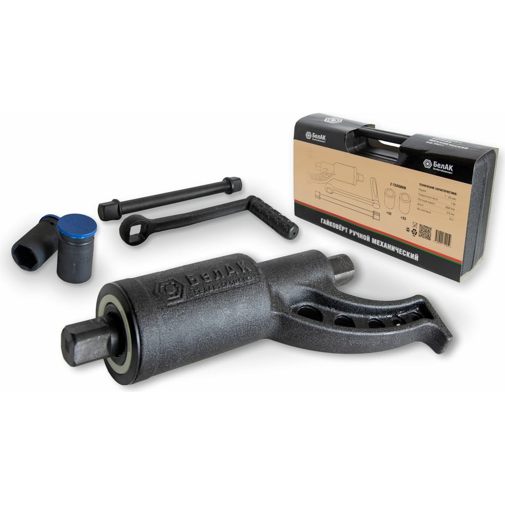 Механический гайковерт 32х33 БелАК БАК.00017 с набором головок обладает светоотражающим пыльником, который защищает от попадания грязевых частиц в механизм редуктора гайковерта. Фирменный логотип на корпусе, выполненный на этапе отливки, защищает от подделок и является гарантом оригинальности изделия. Индивидуальная упаковка головок (индивидуальный пакет + крышка с логотипом) защищает их от коррозии. Передаточное число: 1:56, то есть приложенное усилие будет увеличено в 56 раз. В механизме редуктора гайковерта использованы подшипники, а не втулки скольжения, как у аналогов. Все головки для гайковертов «БелАК» являются ударными. В комплект входит надежный морозостойкий и ударопрочный кейс, который обеспечит удобное и безопасное хранение инструмента.