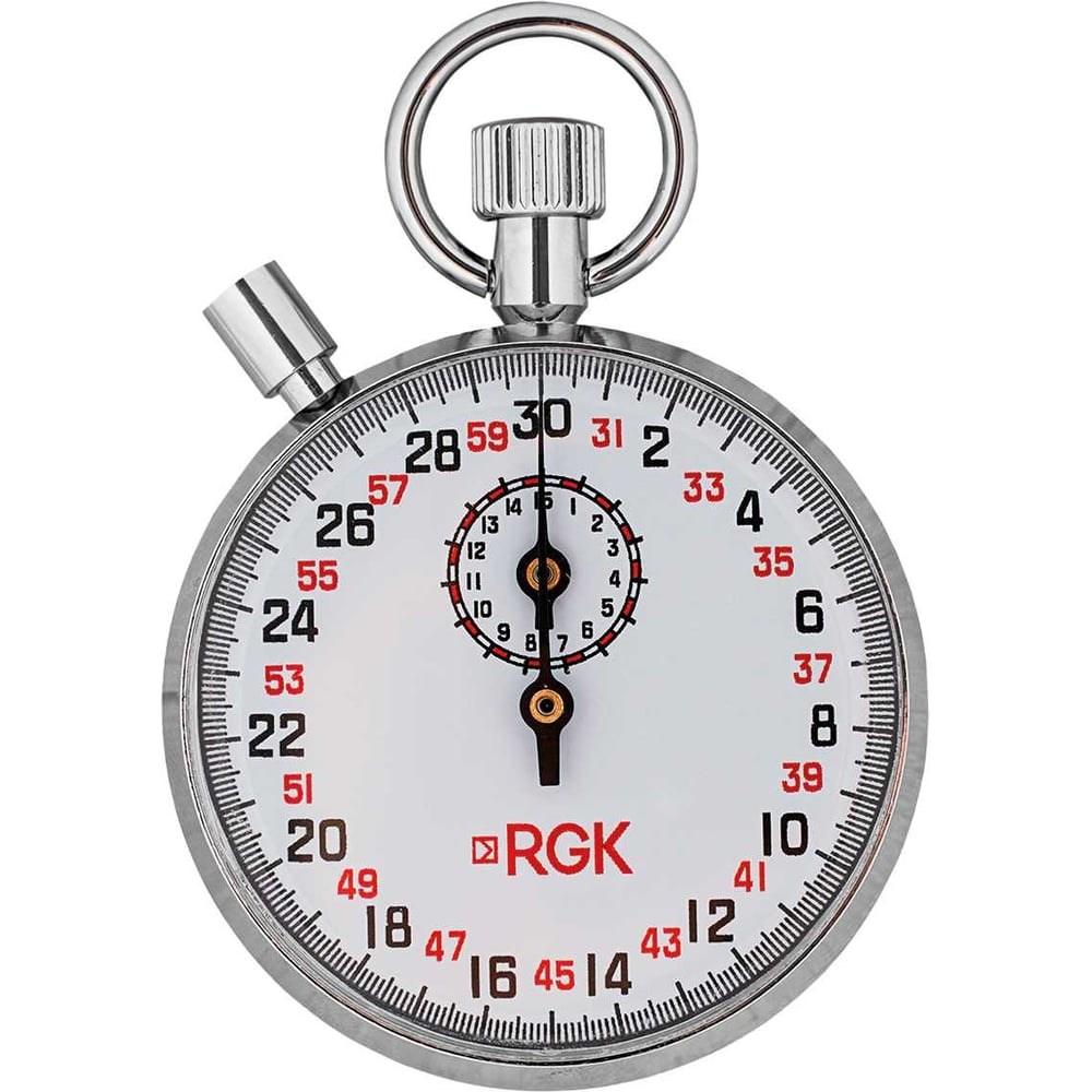 Секундомер механический RGK SWM-1B3 с поверкой – компактный прибор с пружинным приводом, предназначенный для определения продолжительности промежутков времени длительностью до 15 мин. с разрешением 0,1 с. Изделие снабжено часовым механизмом одно стрелочного типа с дополнительной минутной шкалой уменьшенного размера, который оборудован ручным управлением, реализующим возможность повторного запуска и останова хронометража без обнуления. За счет этого прибор способен выполнять автоматическое суммирование временных интервалов с нарастающим итогом, позволяя регистрировать общий тайминг событий прерывистого характера.Конструкционные и функциональные особенностиЗа счет скругленной формы и благодаря оптимальному размеру секундомер удобно удерживается в руке. Основные элементы корпуса и детали часового механизма изготовлены из нержавеющей стали, не подверженной коррозии и стойкой к истиранию, благодаря чему устройство обладает высоким эксплуатационным ресурсом. Приводная пружина из никелевого сплава сохраняет упругие свойства в течение всего срока службы изделия, обеспечивая стабильность и точность хода. Для запуска-останова часового механизма и возвращения отсчетного устройства в нулевое положение задействуются разные органы управления – заводная головка и кнопка сброса соответственно.