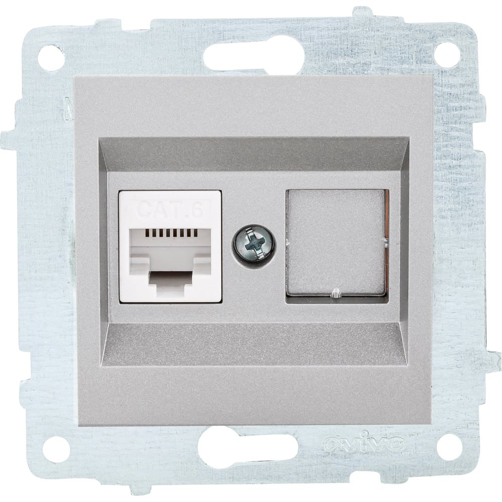 Механизм компьютерной 1-местной розетки RJ45 OVIVO CAT6, серебро, 600-000310-229