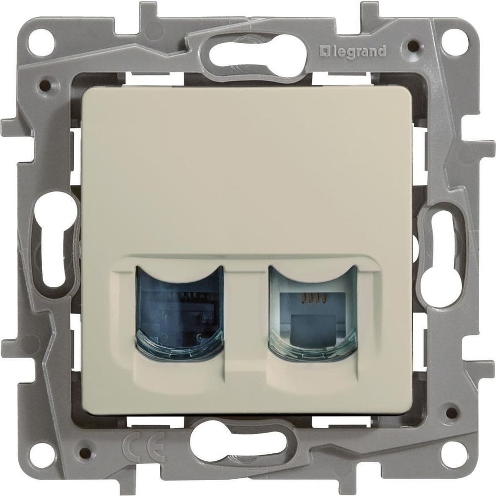 Розетка Legrand двойная RJ11+RJ45 категория 5e UTP Legrand Etika слоновая кость 672352