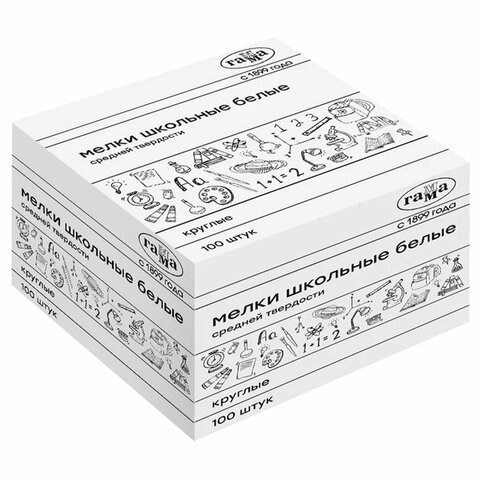 Мел белый круглый средней твердости 100 штук, ГАММА, картонная упаковка, 280120212