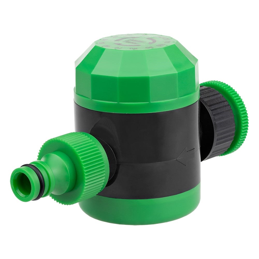 Предназначен для управления продолжительностью полива. Возможный диапазон времени от 10 до 120 мин. В комплекте с сетчатым фильтром. Рабочее давление от 2 до 6 бар. Не требует батареек. Корпус изготовлен из легкого ударопрочного ABS-пластика.Регулировка времени полива осуществляется путем вращения регулятора таймера по часовой стрелке. Таймер самостоятельно прекратит подачу воды по истечении заданного времени.Во избежание поломок механизма таймера. Повторную установку продолжительности полива необходимо произвести после того, как регулятор вернется в положение ноль.