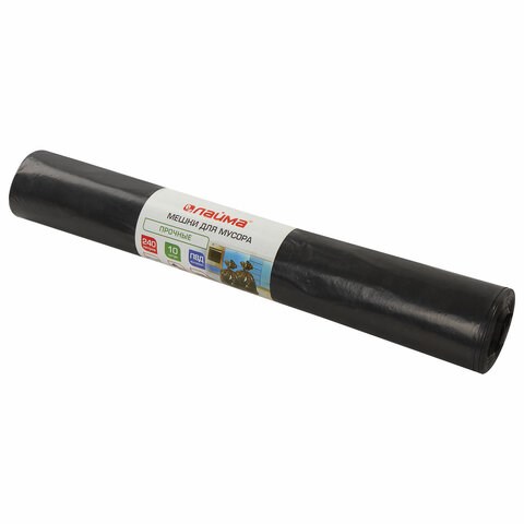 Мешки для мусора 240 л, черные, в рулоне 10 шт., прочные, ПВД 50 мкм, 90х140 см, LAIMA, 605337
