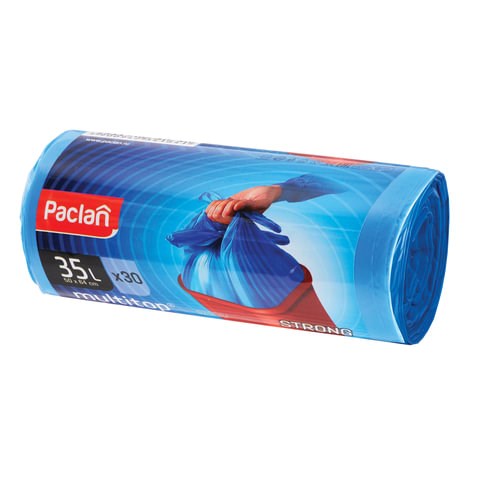 Мешки для мусора, 35 л, с ушками, синие, рулон 30 шт., ПНД, 10,5 мкм, 50х64 см, PACLAN "Multitop"