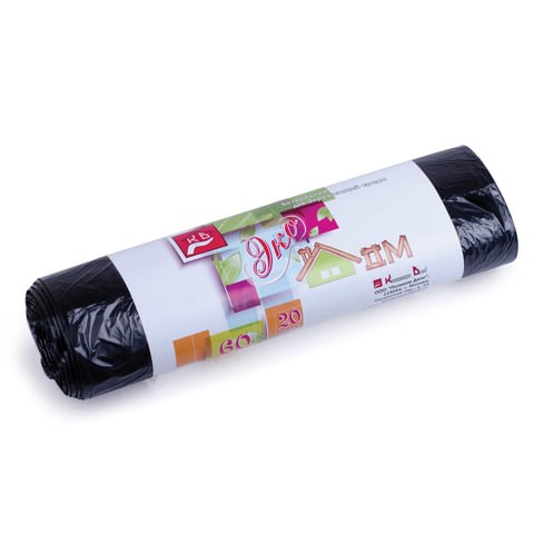 Мешки для мусора, 60 л, черные, в рулоне 20 шт., ПНД, 7 мкм, 60х70 см, эконом, КБ, "ЭкоДом", 1749