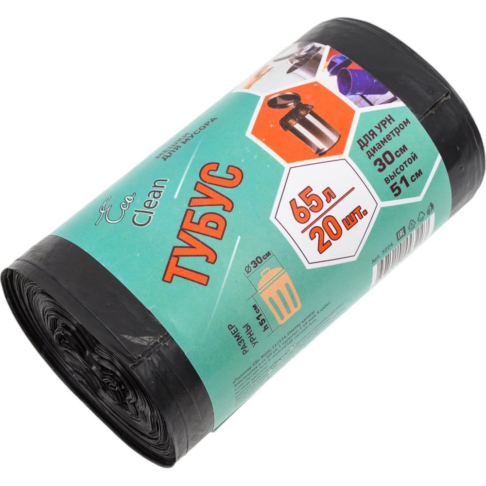 Мешки для мусора EcoClean ТУБУС Концепция Быта 3255 предназначены для сбора строительного и бытового мусора. Материал – ПНД 6 микрон. Количество в упаковке – 30 штук. Размер мешка – 32х50 см.