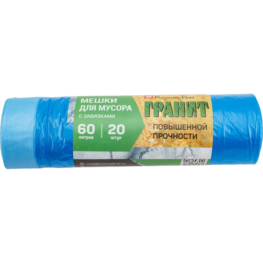 Мешки для мусора с затягивающейся тесьмой Гранит Концепция Быта 1022 предназначены для сбора строительного и бытового мусора. Материал – ПНД 20 микрон. Количество в упаковке – 20 штук.