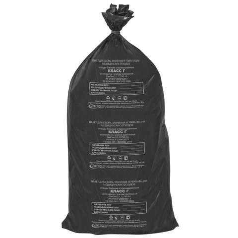 Мешки для мусора медицинские КОМПЛЕКТ 20 шт., класс Г (черные), 100 л, 60х100 см, 14 мкм