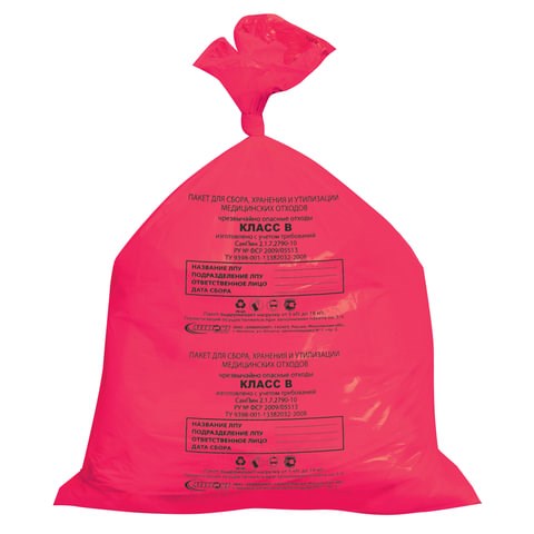 Мешки для мусора медицинские КОМПЛЕКТ 50 шт., класс В (красные), 30 л, 50х60 см, 14 мкм
