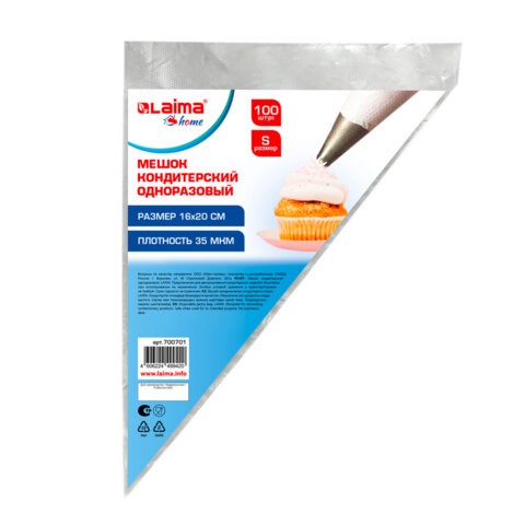 Мешок кондитерский одноразовый 16х20 см, размер S, КОМПЛЕКТ 100 штук, 35 мкм, LAIMA Home, 700701