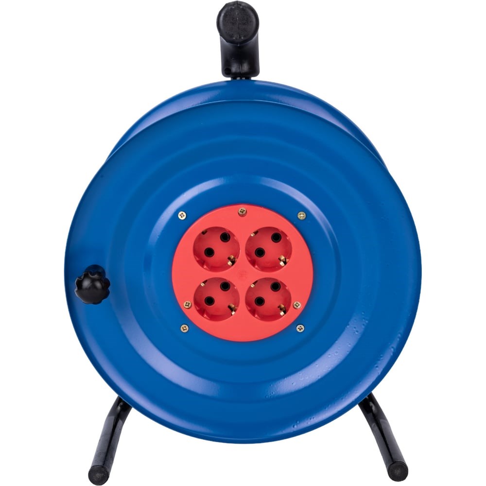 Металлическая катушка для удлинителя- предназначена для удобного хранения и перемещения силового провода электрического удлинителя. Катушка - это удобное приспособление для защиты длинного провода от спутывания, его хранения и транспортировки. Изделие оснащено устойчивой металлической опорой, практичной ручкой для переноски и устройством для быстрого сматывания шнура питания удлинителя.Удлинитель на катушке используется на строительных площадках, в производственных цехах и бытовых условиях, позволяет присоединить несколько электрических приборов одновременно. Удлинитель на катушке необходим там, где осуществляется работа с электрическим оборудованием, находящимся на большом расстоянии от сети электропитания.На корпусе катушки располагается устойчивая подставка и специальная рукоятка для удобства переноски удлинителя. Катушка без удлинителя, диаметр 30 см, 4 розетки с заземлением, металлическая катушка без провода, металлическая тренога, IP-20. Длинна провода с сечением 3х2,5 составит ±50 м.