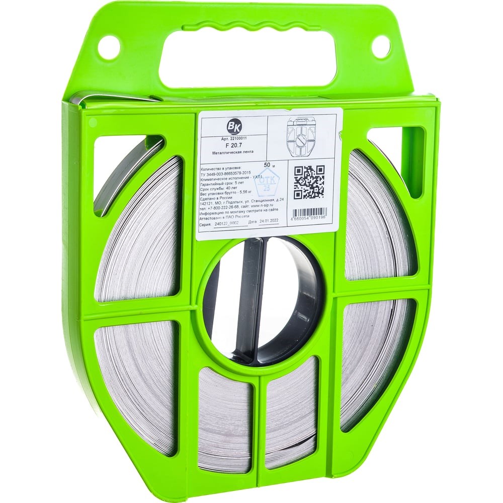 Металлическая лента ВК F 20.7 50 м 22100011 применяется для крепления анкерных и подвесных кронштейнов вокруг металлических, железобетонных и деревянных опор при помощи инструмента CVF, OPV, OPV3.Предел текучести не менее 230 МПа, предел прочности при растяжении не менее 540 МПа.Рекомендуется использовать со скрепой С 20.Для обрезки ленты рекомендуется использовать ножницы CIS.