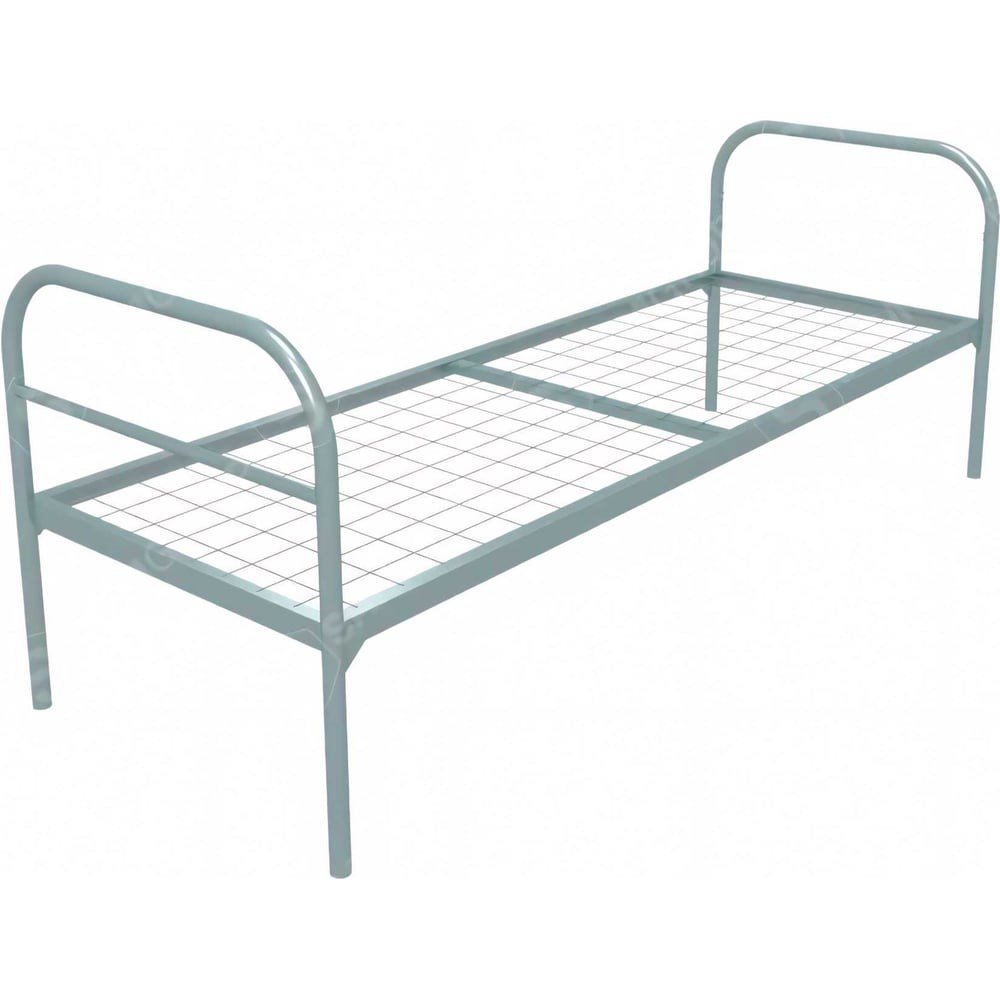 Размер спального места: 190 х 90 см Ложе из сварной сетки. Ячейка 100 х 50 мм Клиновое соединение Диаметр трубы спинок: 32 мм Перекладина из профильной трубы 20 х 40 мм Перемычка из профильной трубы 25 х 25 мм Высота от пола до спального места: 40 см Высота спинки: 73 см Порошковая покраска Выдерживает до 100 кг Особенности: 1 перекладина на спинке, 1 перемычка на ложе Поставляется в разобранном виде без упаковки Дополнительно можно приобрести матрас - SR-107390190