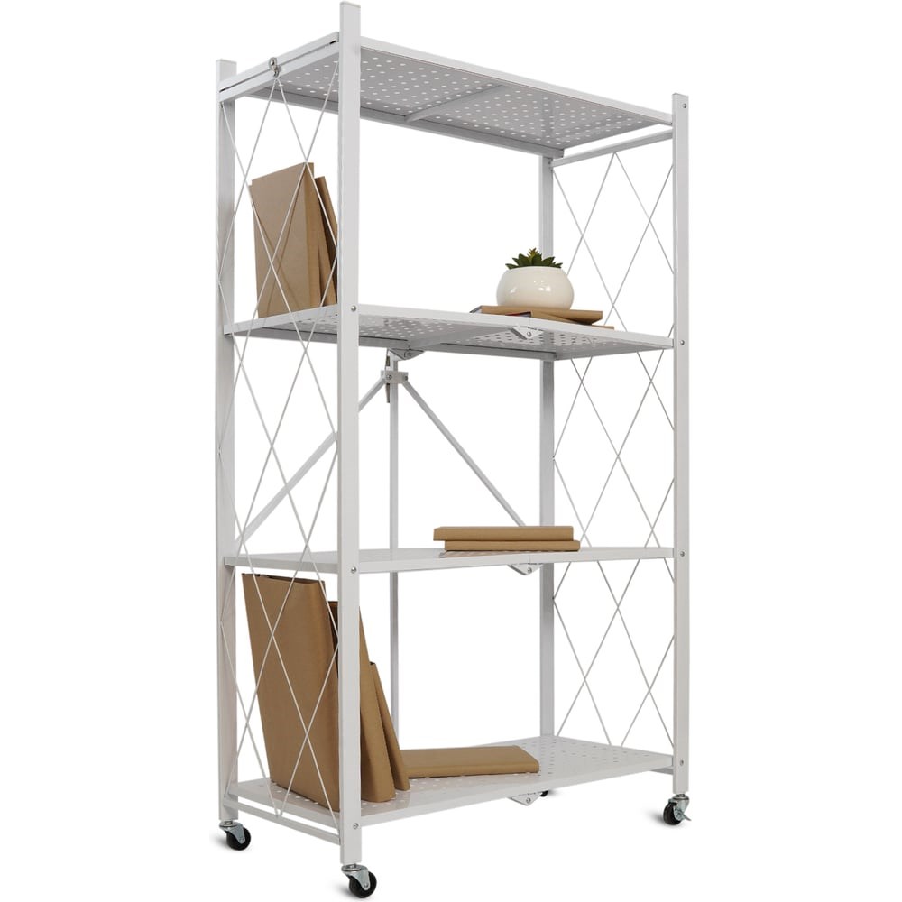 Стеллаж трансформер металлический белый Атлант-4 на 4 полки — это идеальное решение для хранения вещей в различных помещениях вашего дома, офиса и дачи, обеспечивающее порядок и удобство в использовании. Этот складной стеллаж на колесиках открытого типа представляет собой 4-х ярусную систему хранения. Глубина полки составляет 32 см, а высота стеллажа на колесах - 126 см.Тип стеллажа: складной.Материал исполнения: металлический.Кол-во полок: 4 шт.Компактность: Легко складывается и удобно хранится, идеально подойдет даже для небольших пространств.Подвижность: Устанавливается на ножках или на колесиках, благодаря чему легко перемещается туда, куда необходимо.Безопасность: Два колеса оснащены стопорным механизмом, обеспечивая устойчивость конструкции.Прочность: Каждая из 4-х металлических полок выдержит нагрузку до 15 кг, надежно разместив ваши вещи. Общая нарузка до 60 кг.Простота сборки: Быстрая установка всего за 15 секунд: достаете из коробки, раскладываете и прикручиваете колесики.Транспортировка: В сложенном виде легко перевозится в автомобиле.Многофункциональность: Подходит для книг, цветов, рассады, игрушек, книг, посуды, под микроволновку, для инструментов, декоративных элементов и даже как элемент зонирования пространства. Отличный вариант для ванной комнаты, на кухню, на балкон, на дачу, в мастерскую, в детскую, в гараж и т.д..Дизайн: Белый металлический каркас впишется в любой интерьер, подчеркивая функциональность и эстетику вашей обстановки.