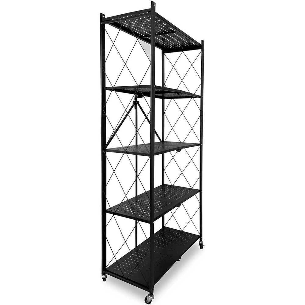 Стеллаж трансформер металлический черный Атлант-5 на 5 полок — это идеальное решение для хранения вещей в различных помещениях вашего дома, офиса и дачи, обеспечивающее порядок и удобство в использовании. Этот складной стеллаж на колесиках открытого типа представляет собой 5-х ярусную систему хранения. Глубина полки составляет 32 см, а высота стеллажа на колесах - 158 см.Тип стеллажа: складной.Материал исполнения: металлический.Кол-во полок: 5 шт.Компактность: Легко складывается и удобно хранится, идеально подойдет даже для небольших пространств.Подвижность: Устанавливается на ножках или на колесиках, благодаря чему легко перемещается туда, куда необходимо.Безопасность: Два колеса оснащены стопорным механизмом, обеспечивая устойчивость конструкции.Прочность: Каждая из 5 металлических полок выдержит нагрузку до 15 кг, надежно разместив ваши вещи. Общая нарузка на стеллаж до 75 кг.Простота сборки: Быстрая установка всего за 15 секунд: достаете из коробки, раскладываете и прикручиваете колесики.Транспортировка: В сложенном виде легко перевозится в автомобиле.Многофункциональность: Подходит для книг, цветов, рассады, игрушек, книг, посуды, под микроволновку, для инструментов, декоративных элементов и даже как элемент зонирования пространства. Отличный вариант для ванной комнаты, на кухню, на балкон, на дачу, в мастерскую, в детскую, в гараж и т.д..Дизайн: Черный металлический каркас впишется в любой интерьер, подчеркивая функциональность и эстетику вашей обстановки.
