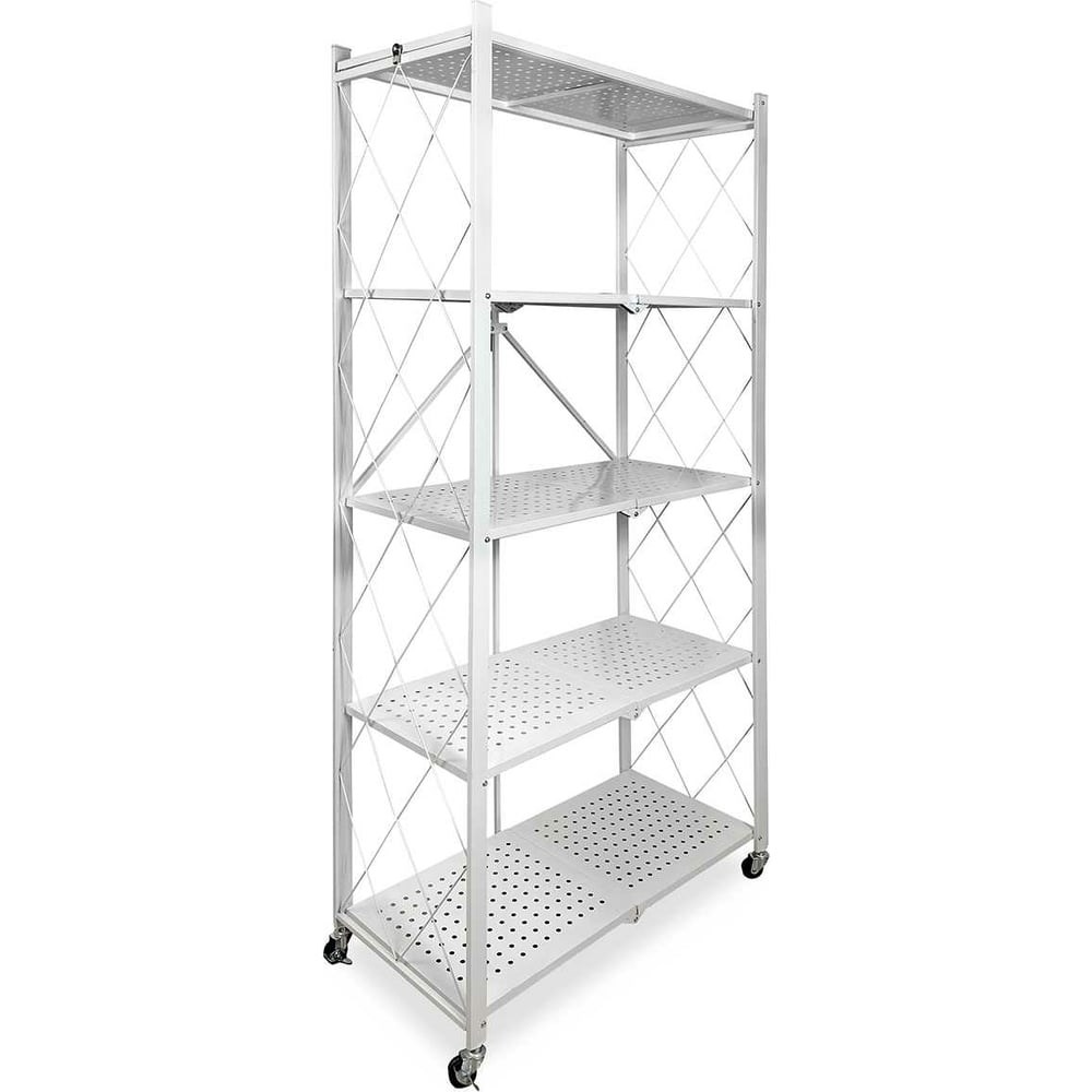 Стеллаж трансформер металлический белый Атлант-5 на 5 полок — это идеальное решение для хранения вещей в различных помещениях вашего дома, офиса и дачи, обеспечивающее порядок и удобство в использовании. Этот складной стеллаж на колесиках открытого типа представляет собой 5-х ярусную систему хранения. Глубина полки составляет 32 см, а высота стеллажа на колесах - 158 см.Тип стеллажа: складной.Материал исполнения: металлический.Кол-во полок: 5 шт.Компактность: Легко складывается и удобно хранится, идеально подойдет даже для небольших пространств.Подвижность: Устанавливается на ножках или на колесиках, благодаря чему легко перемещается туда, куда необходимо.Безопасность: Два колеса оснащены стопорным механизмом, обеспечивая устойчивость конструкции.Прочность: Каждая из 5 металлических полок выдержит нагрузку до 15 кг, надежно разместив ваши вещи. Общая нарузка на стеллаж до 75 кг.Простота сборки: Быстрая установка всего за 15 секунд: достаете из коробки, раскладываете и прикручиваете колесики.Транспортировка: В сложенном виде легко перевозится в автомобиле.Многофункциональность: Подходит для книг, цветов, рассады, игрушек, книг, посуды, под микроволновку, для инструментов, декоративных элементов и даже как элемент зонирования пространства. Отличный вариант для ванной комнаты, на кухню, на балкон, на дачу, в мастерскую, в детскую, в гараж и т.д..Дизайн: Белый металлический каркас впишется в любой интерьер, подчеркивая функциональность и эстетику вашей обстановки.