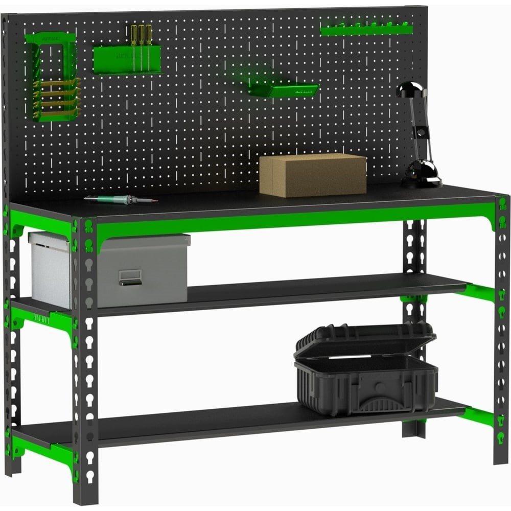 Предназначен для удобной организации рабочего места. Стол используется на производствах, на складах, в гаражах, мастерских и на других объектах. Перфопанель с комплектом аксессуаров является дополнительный элементом, который увеличивает рабочее пространство и структурирует хранение инструмента. Толщина перфопанели 0.8 мм.Толщина столешницы-1.5мм.Две нижние полки. Крепление перфопанели: болтовое. Металлический стол отличается практичностью, мобильностью, прочностью и долговечностью в использовании. Крепление элементов стола: безболтовое.Цвет: Тёмно-серый+зелёный.Допустимая нагрузка на конструкцию – до 260 кг.