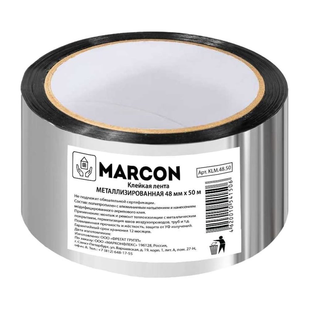 Металлизированная клейкая лента MARCON KLM.48.50 состоит из 3 слоев: фольги, защитной пленки и клея из акрила. Клеевая основа характеризуется высокой адгезией, благодаря чему прекрасно сцепляется с металлическими, пластиковыми , стеклянными и прочими поверхностями. Применяется: строительство и ремонт; при ремонте автомобиля ( ремонт глушителя, устранения течи радиатора); при монтаже системы отопления, применяется для дымоходов и теплоисточников; применим для кровли и изоляционной отделке стен от влаги; отлично подходит для изоляции греющего кабеля; незаменим при упаковке, отлично удерживает тяжелые грузы; при ремонте техники, электроники и музыкальных инструментов.