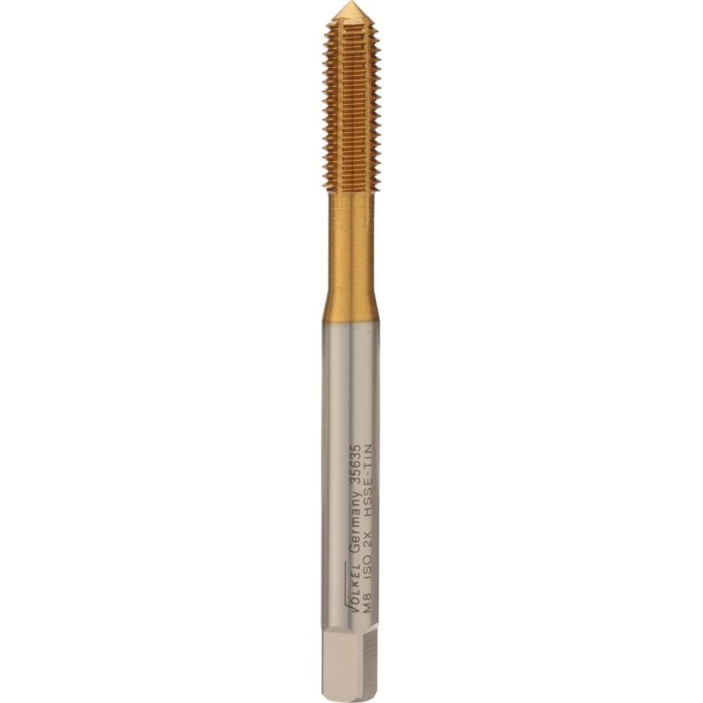 Метчик раскатник VOELKEL М8 шаг 1,25 мм HSSE-TiN DIN371 V35635 предназначен для создания внутренней резьбы в различных материалах. Метчик отличается от других тем, что в процессе изготовления резьбы происходит не резка материала, а его уплотнение тем самым не повреждается структура волокна. Не образуется стружка, а значит не требуется создание условий для ее отведения.Полученная резьба - более прочная, т.к. материал в области витков уплотняется, а не вырезается. Раскатник изготовлен из высококачественной быстрорежущей стали HSSE, которая гарантирует прочность и износостойкость.Покрытие TiN (нитрид титана) снижает энергоемкость, повышает надежность инструмента.Подходит для обработки заготовок, выполненных из легированной или нержавеющей стали, чугуна, алюминия, меди, бронзы, цинка, с пределом прочности до 900MPa. Наличие масляных канавок дает возможность использовать раскатник для глубины резьбы более 1,5 x D для оптимизации смазки.Допуск: ISO2X/6HX