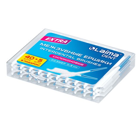 Межзубные ершики 0,8 мм силиконовые "40 + 5 шт. в подарок!", в боксе, для зубов и брекетов, LAIMA DENT, 609417