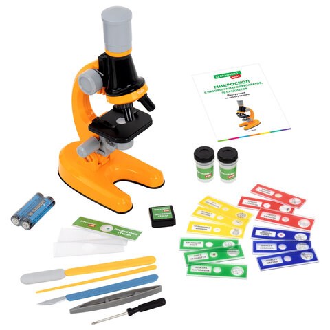 Микроскоп BRAUBERG KIDS - готовый набор юного учёного! Он прост в использовании и укомплектован всем необходимым для того, чтобы каждый ребёнок мог почувствовать себя настоящим исследователем. Оптика высокого качества обеспечивает увеличение (произведение кратности увеличения окуляра на кратность увеличения объектива) в 100х, 400х и даже 1200х. Встроенная LED-подсветка (батарейки в комплекте) создаст оптимальное освещение во время наблюдений.