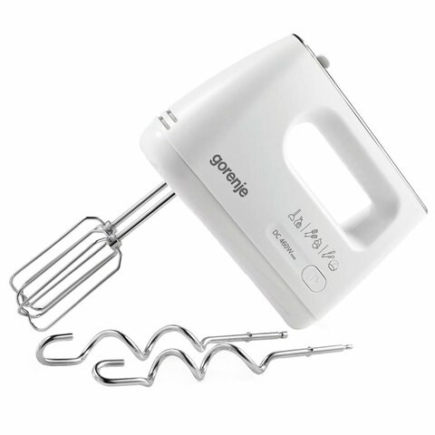 Миксер GORENJE M460CDC, 400 Вт, 5 скоростей, 2 венчика, 2 крюка для теста, белый, 7356